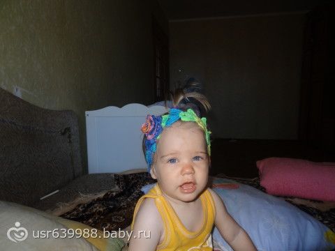 Закончила я платье для дочи крючком, остались ниточки и я связала еще повязку ей