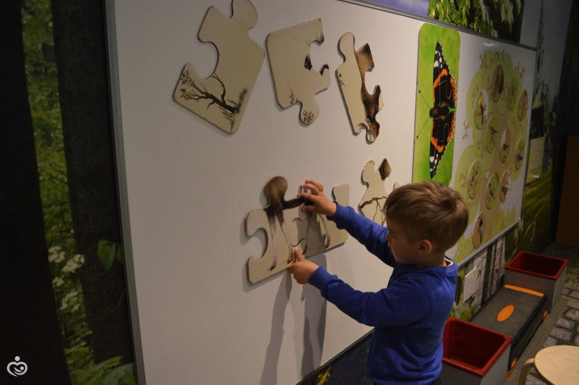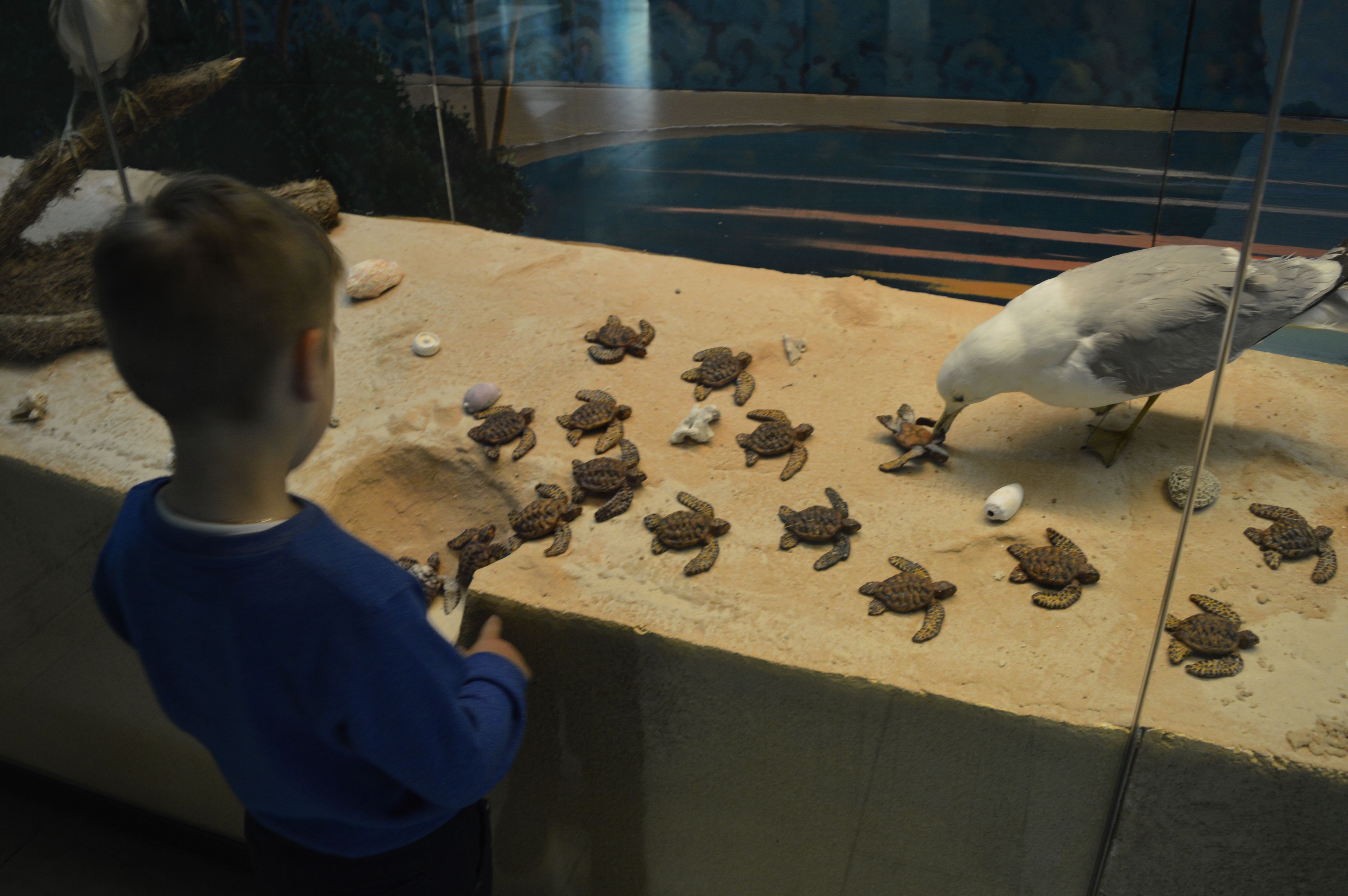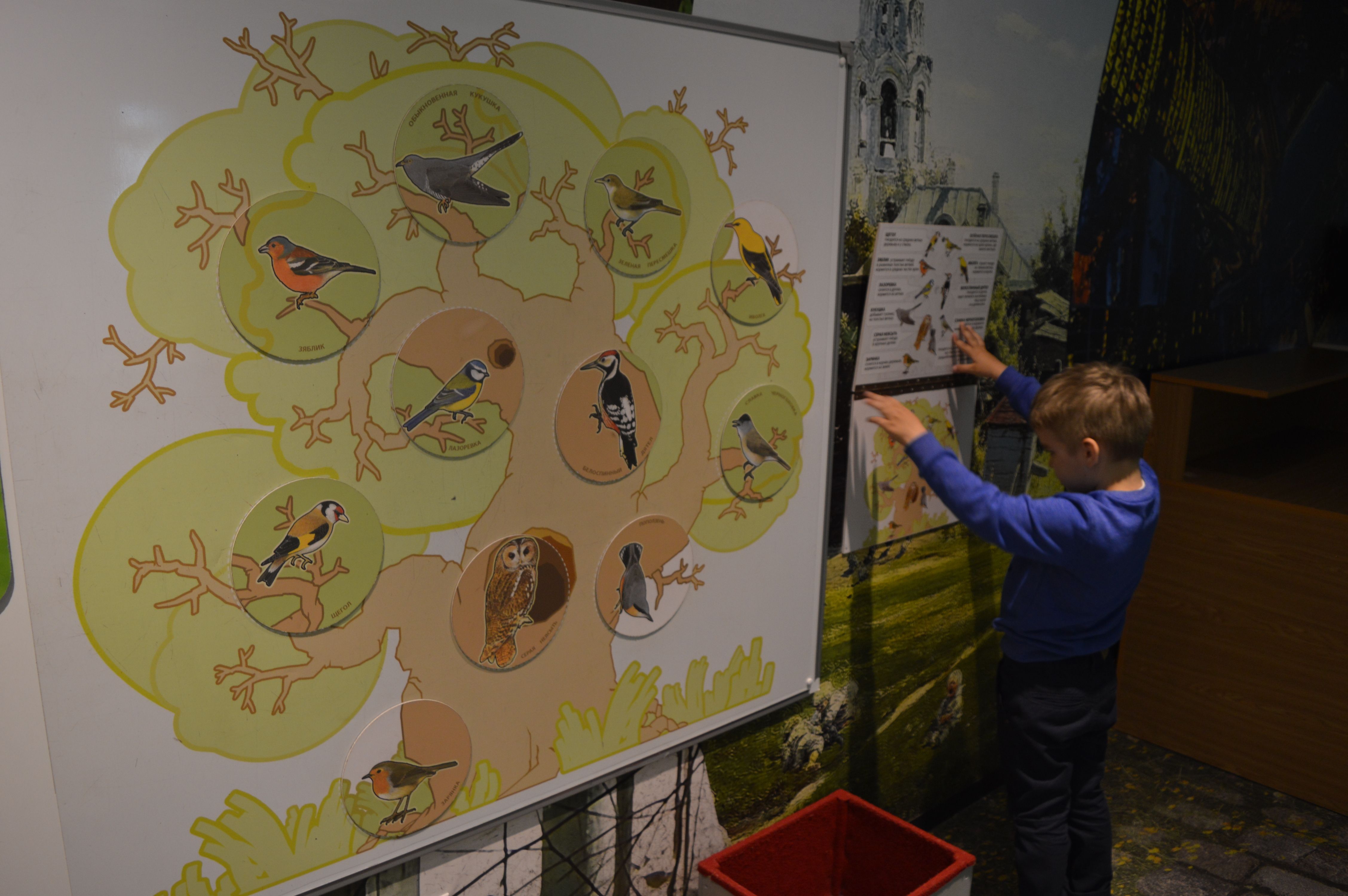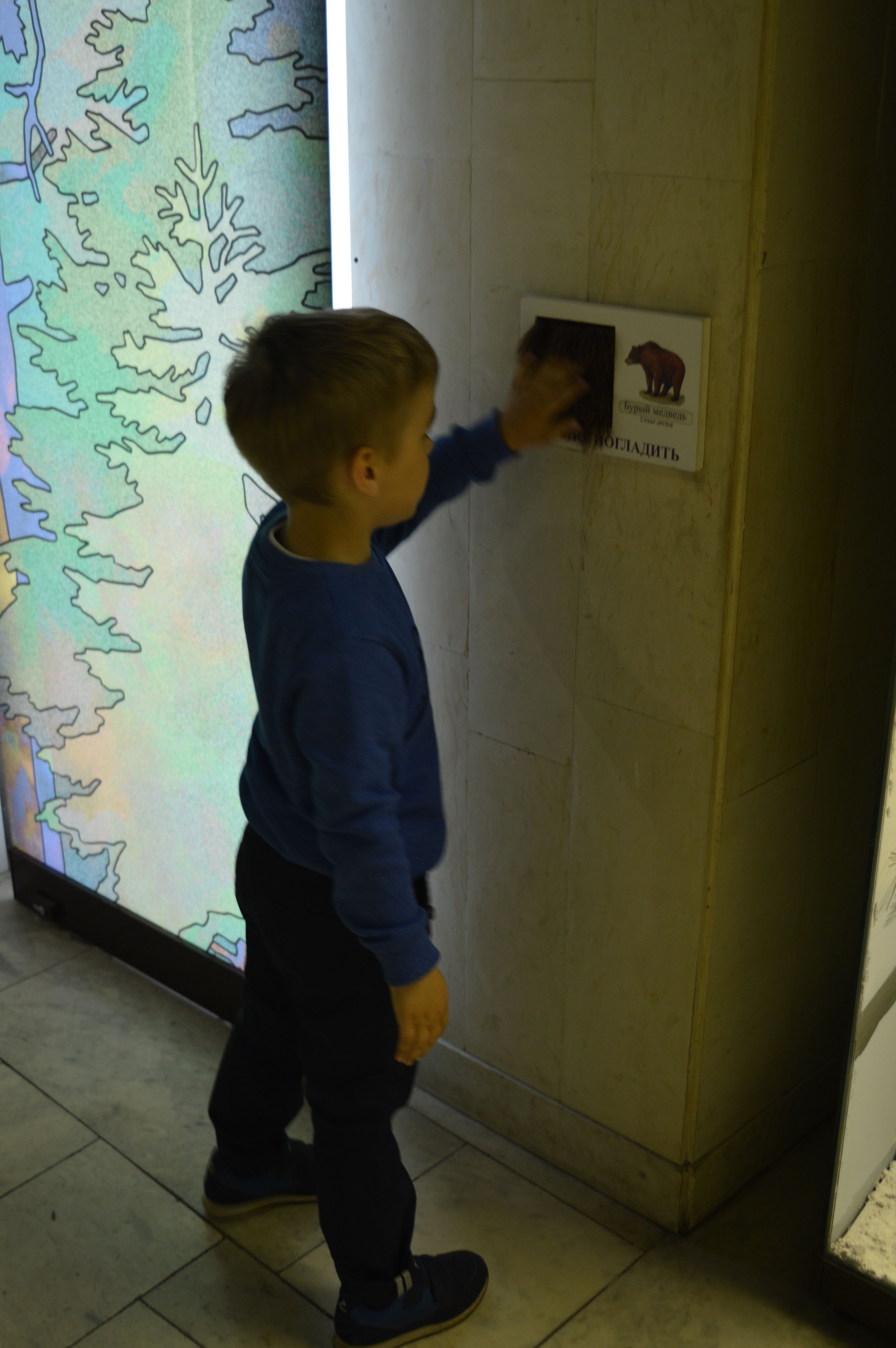 Дальше мы отправились на на второй этаж, там предоставлен зал «Этапы познания живой природы», Диму не очень привлекло, потому что не понятно, хотя на кое — что он обратил внимание.