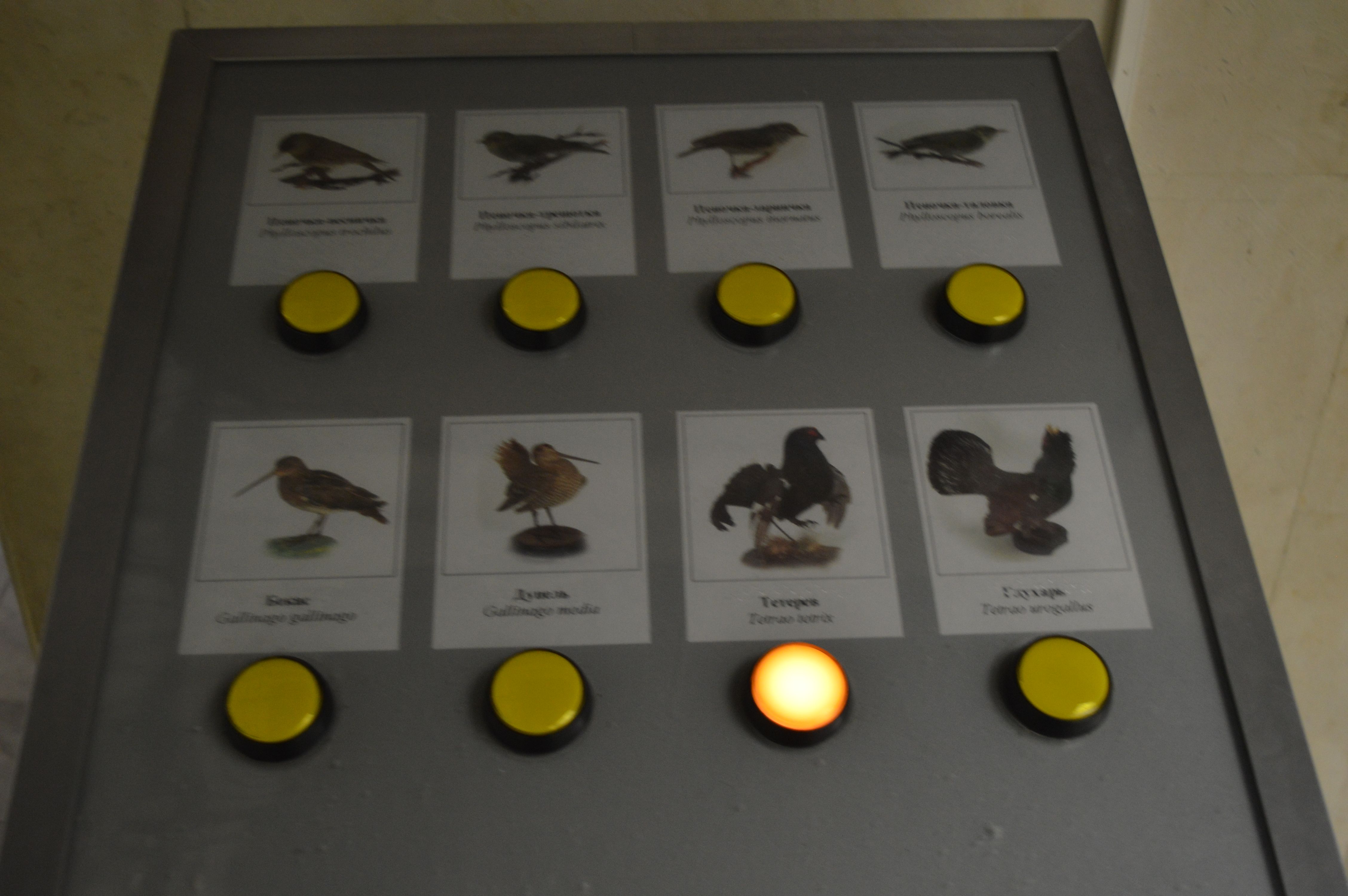 Возле некоторый витрин стояли аппараты, на которых можно было послушать «голоса» животных и птиц.