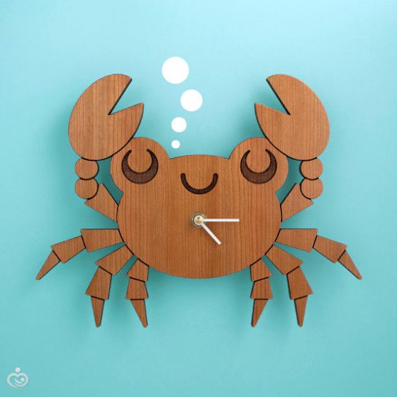 Настенные часы в виде краба из дерева нашла на Etsy ():