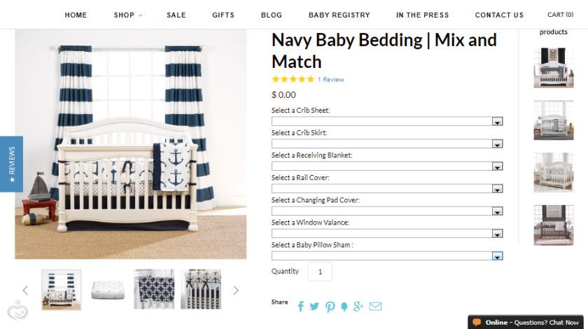 Встретила интернет-магазин Liz and Roo (), где можно подобрать в детскую кроватку все самое необходимое. Открыв понравившееся фото, можно выбрать «как есть на фото» или комбинировать самостоятельно. Удобство в том, что не надо переключаться между окнами, а выбрать все в одном окне, используя только кнопки выбора.