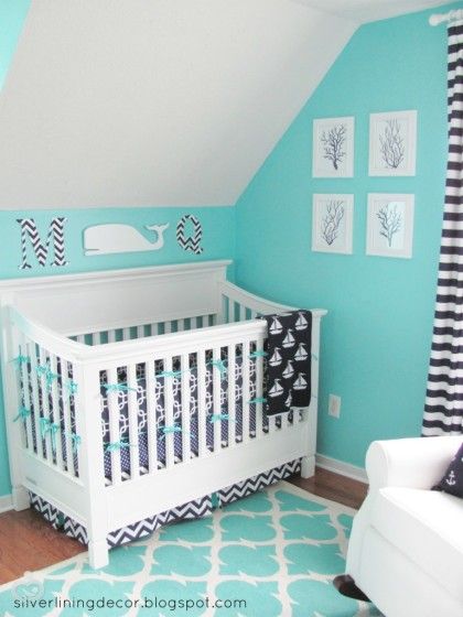 Но! Не все дизайнеры согласны с таким подходом. Однообразие стало сменяться более интересными вариантами морского стиля.Например, понравились варианты с яркими бирюзовыми оттенками в сочетании с глубоким синим и белым.