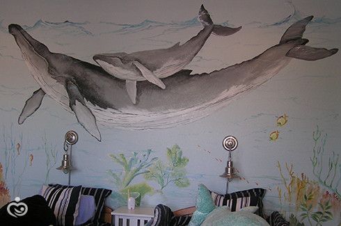 А Juli Simon () предлагает расписать стены в выбранный сюжет. На сайте представлено несколько тематик. Из морских есть, например, «Волны» и «Киты». Выглядит интересно. Изюминка в том, что используется не трафарет, а живая роспись красками и кистью.