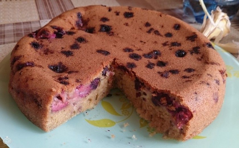 Чашу смазать маслом, вылить тесто, сверху присыпать тесто ягодами. Ягода любая подойдет: смородина, малина, клубника, вишня, жимолость и т. д.Выпекаем ягодный пирог в мультиварке, в режиме «выпечка» 60 минут. После сигнала пирог аккуратно вынуть при помощи корзинки — пароварки и переложить на блюдо. При желании можно присыпать пирог с ягодами — сахаром или сахарной пудрой.Приятного аппетита!!!