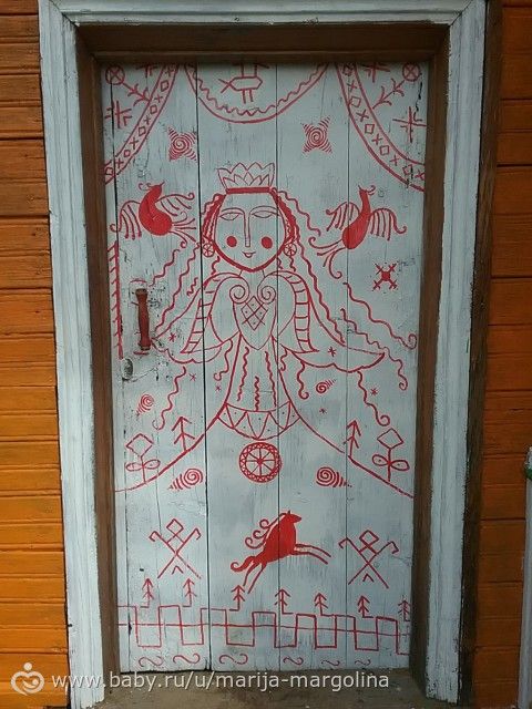 Это наша входная дверь.Символы и обереговые образы взятые в из древней росписи