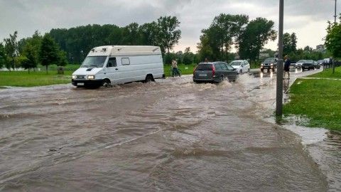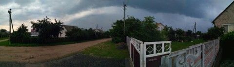 А погода у нас сегодня соответствует празднику. Всё залило. Я успела за два дня выдрать чеснок, ободрать огород, даже закатала литров 25-30 кой-чего. И с «чуффстфом хлубокхого удоулетворэния» наблюдаю за ливнем за окном. Сын по пути с работы сфоткал дорогу. И тучу над нашим двором вечером. А сейчас снова грозища.
