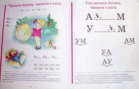 На второй фотке как раз и показано, как научить соединять буквы в слогЯ сынуле год назад купила этот букварь, замечательная вещь! Там подробно описано, как складывать слоги, ну и читать в дальнейшем.С первого занятия он "щёлкал"слоги уже, сейчас книжки мне читает, потихонечку совсем, правда))