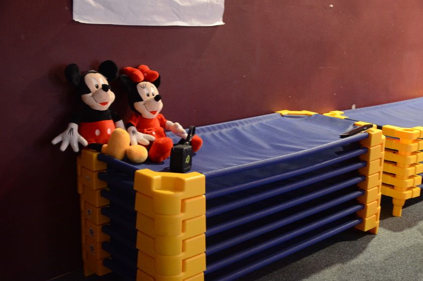 Группу малышей ещё укладывают спать в обед.Для этого есть лежаки.Когда надо их раскладывают.В школах такие же лежаки у Орели были.