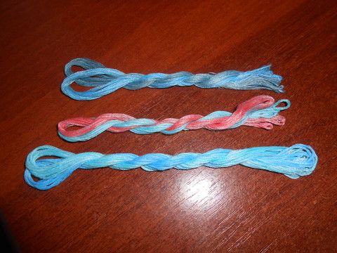 И вот такие ниточки у 1 и 3-го-шикарные цвета на первый взгляд.2 моточек ну… так себе, а вот когда начала вышивать… ммм… ооочень понравился цвет, вернее цвета))))