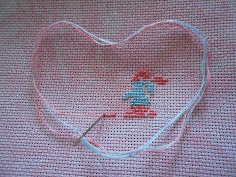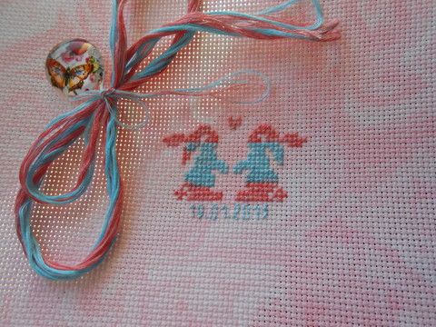 Розовый отрезок канвы потускнел, после стирки на 1 тон, а голубой на все 3.