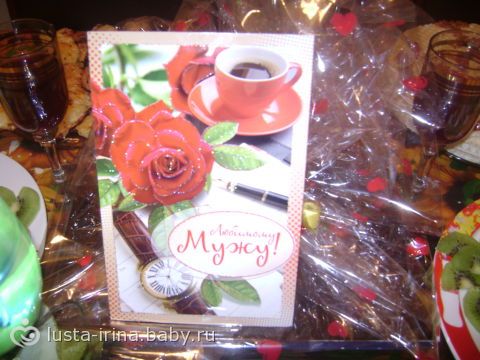 Приветик подружки! ну вот отчитуюсь за нашу годовщину… 1 марта… Утро… муж поцеловал «поздравил» как положено пока дети спали после душа сделал себе кофе мне чай попили и он пошол на работу… ну думаю гаденыш такой ниче не подарил… а я ж то на вечер ему готовила подарок… и все-таки надеялась что и он вечером подарит розочку....