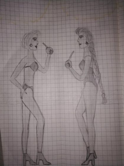 Вот 2 рисунка, как мне тогда казалось «КРАСИВЫХ» женщин) Рисунков очень много, просто почему-то эти особенно рассмешили...