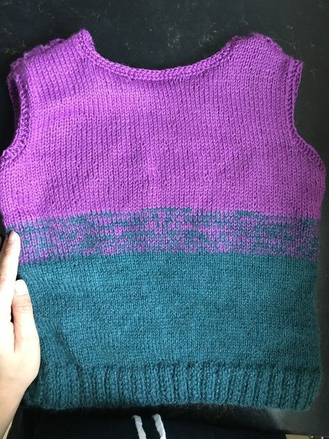 жилетку доченьке связала давно, но вот лежала, тк лень было горловину и проймы обработать, но как обычно ток похолодало, и Вика сразу за спицы))заодно и выгуляли на прогулку