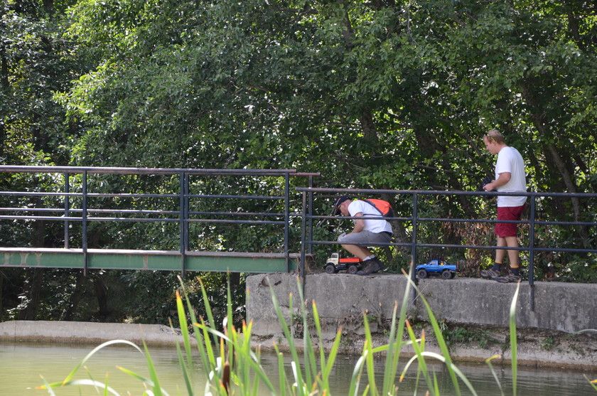 А ещё встретились нам там двое взрослых мужчин, играющих в машинки.Они реально играли.Машинки на пульте и они вдвоём решили пройти вокруг озера с машинками.Там были препятсвия для машин, мужики так ласково машинки поднимали, аккуратненько ставили, заставляли их на корни деревьев лезть, страховали рядышком.Умереть не встать, вот смешно наблюдать было.
