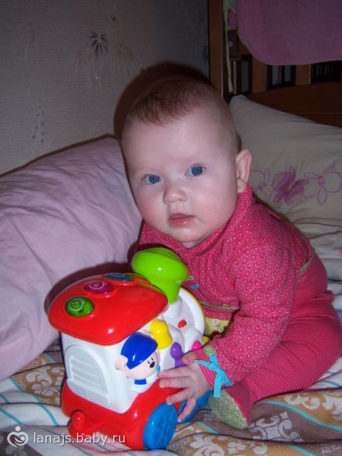 мы начали ползать активно и переворачиваться, я спустила доцю на пол постелила одеяло и меховый конверт