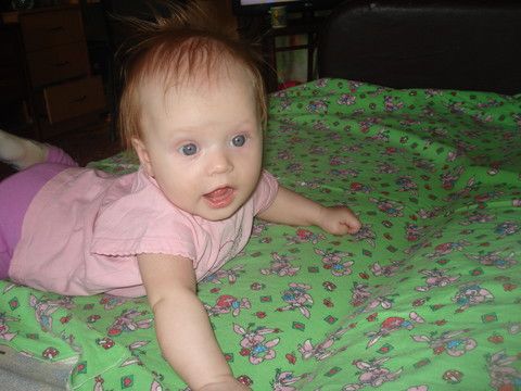 Исполнилось 23 числа. моя Крошечка стала на месяц старше. НЕ ВЕРЮ. сходили сегодня на прием весит она 6300 (+1300) рост 62 см (+4 см) Кушает кашку гречневую и пюре морковное, ну и соновное у нее смесь. Переворачиваться так и не хочет, зато научилась хватать своими ручонками игрушки и второй ручкой пытается дотронуться. Когда сидишь с ней за столом пытается уже схватить что то со стола, но ручки пока не особо слушаются. Следит злазками уже за всеми и вообще растет очень улыбчивая девчушка, улыбается даже не знакомым людям. Сделали сегодня гепатит В прививку. Ну и моя дочурка. Как же я рада ее появлению, она мой лучик света.