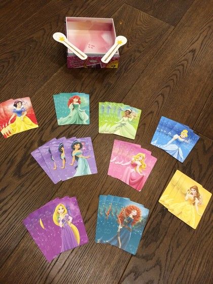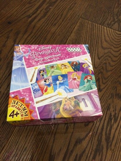 4+ игра для настоящих девочек. Моя обожает её, так как там принцессы, она просто пищит от восторга, когда карточки раздаём. Правда играем в неё не очень часто, потому что она рассчитана на 4-9 игроков. Ещё в этой игре есть волшебные палочки, берётся на 1 палочку меньше, чем игроков (4 игрока-3 палочки). Нужно собрать себе 4 одинаковые карточки, и кто первый соберёт, хватает волшебную палочку, и останове должны взять палочку, кто не успел — проиграл!