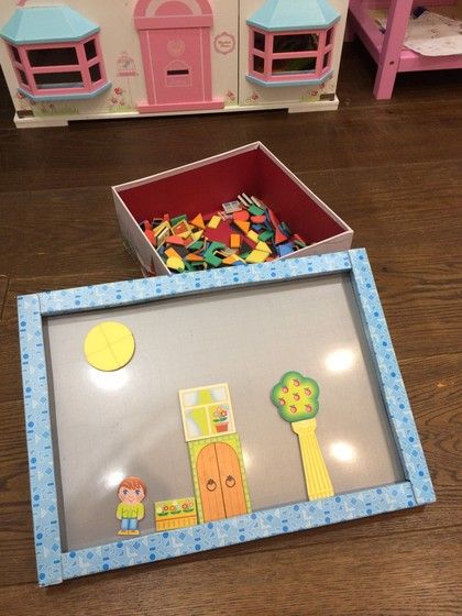 Это игра была подарена нам в детском саду на Новый год. И как-то очень удачно! Мы с Эм можем долго в неё играть, строить разные дома, и сама она в неё хорошо играет, только приносит мне показывает, что у неё вышло!!! Минус только в том, что нет специальной коробки, чтоб хранить, родная не подходит вообще, но я приспособила простую коробочку для магнитииков самих.