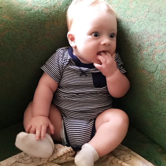 Вертится во все стороны, норовит спать на животе. Просыпаюсь ночью постоянно и переворачиваю. Юла прям. На пузе пытается ползти по пластунски, конечно не получается. Огромное желание сесть. Подтягивается за все что можно — и капец. Зато счастья в глазах тонна!