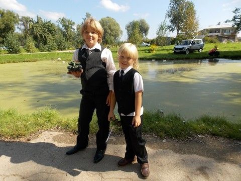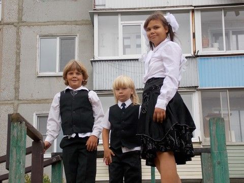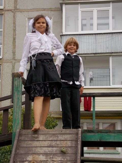 Детки красивые и нарядные! Форма необычная у вас.В наших школах всё серое, кроме белых рубашек и блуз.