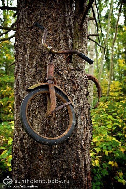 Мальчик оставил свой велосипед прикованным к дереву когда уходил на войну в 1914 году. Он не вернулся, и дереву не оставалось ничего другого, как расти вокруг велосипеда. Невероятно, но этот велосипед находится там уже 98 лет!
