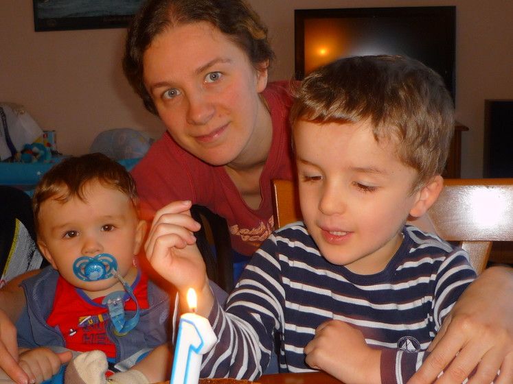 Старший задувал свечку для младшего: ведь маленький ещё задувать не умеет: