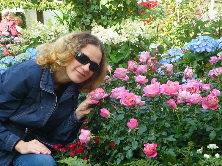 Выставка цветов была прямо в парке: газоны с цветами и с фонтаном в центре. Все это под музыку, а потом мы смотрели на военный парад эпохи Наполеона!