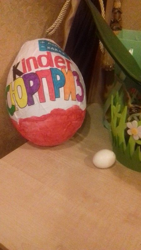 Яйцо Киндер слепила, папье маше. Хотела на День Рождения сделать в декабре, но руки сейчас зачесались! Пробная версия, так сказать. Косяков, конечно, масса, в следующий раз буду делать иначе. И низ красный я еще не дорисовала, сохнет пока. Хотя, ребенок косяки вряд ли заметит, разорвет его в считанные секунды. Слепила за 2 дневных сна.Оно реально большое получилось! Для сравнения сфоткала с обычным куриным яйцом.