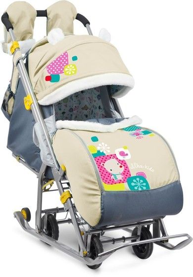 prodam санки ника с колесами 4 шт, б/у 1 зима 3700, механизм рабочий, очень удобные, в комплекте сумка чехол, муфта для рук, утепленные, ручка перекидная