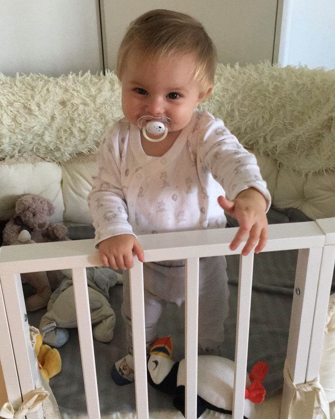5) умелки. Мы стали хлопать в ладоши и целуем мишку в носик. Может ударить, когда что то не нравится. Активно ходим везде по стеночкам, иногда отпускаем руки и стоим, но сам пока не хочет идти.