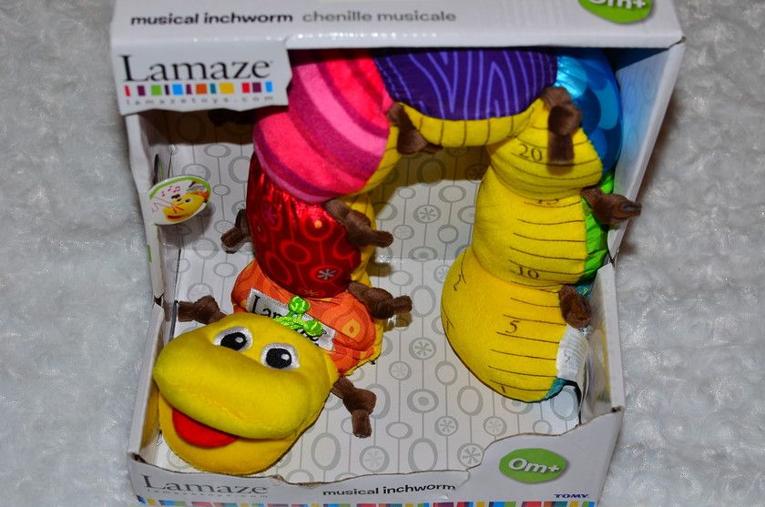 Ну, а дальше милота перед которой я не смогла устоять… гусеница фирмы «Lamaze» — по мордашке ей стукаешь и пиликает...)) заяц погремушка — прорезыватель и канарейка или фламинго...)) покряхтывает)) две погремушки от фишер прайс… Бамболейло!!!..))) и дракошандрий на коляску.