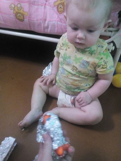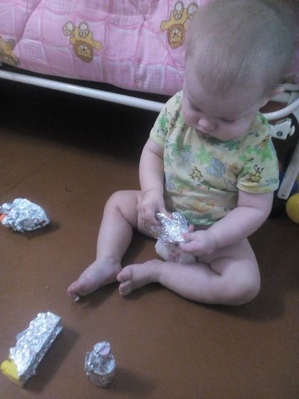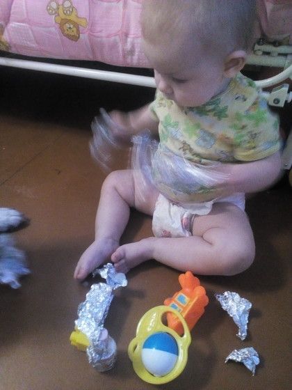 2. потом мы играли«игрушки в фольге» ранее такое не делали. ребенок был в восторге.