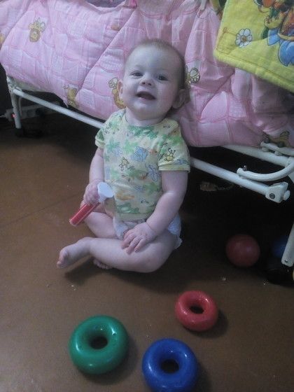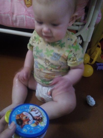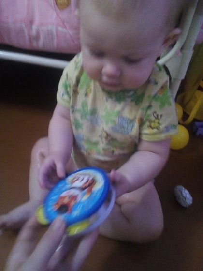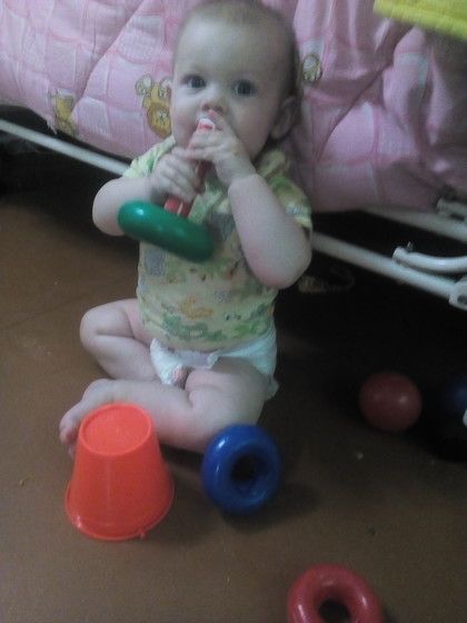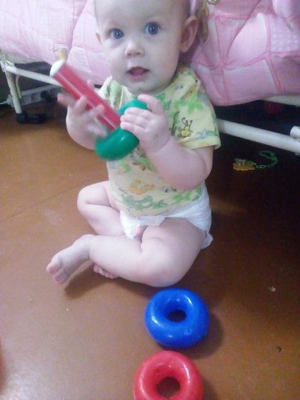 ей очень понравилось, сама снимала, пыталась одеть, но больше понравилось Софье это как фотографирует мама и грызть палочку от пирамидки.