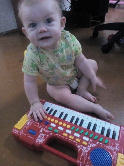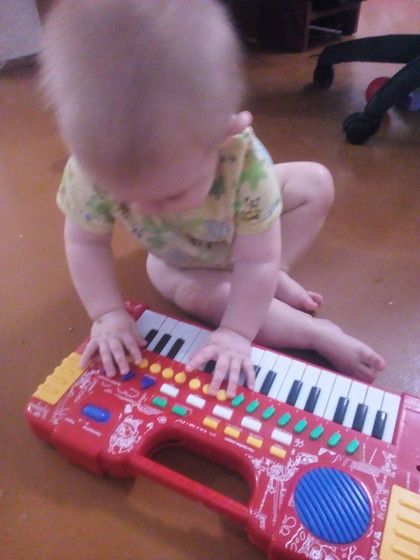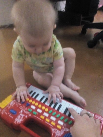 нашла на бубенце котенка, показываю говорю " киса, киса поет мяу мяу" Софья смеется повторяет " мяя" так прикольно, потом весь вечер мяукала)