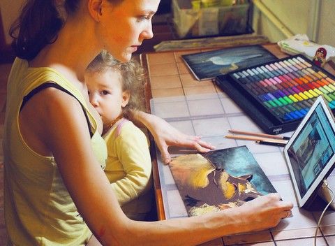 Я рисовала в студенчестве, потом забросила, и вот в декрете снова начала :)