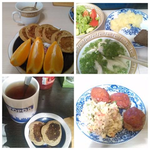 14:00 лапша с курицей и зеленью, картофельное пюре с салатом из овощей