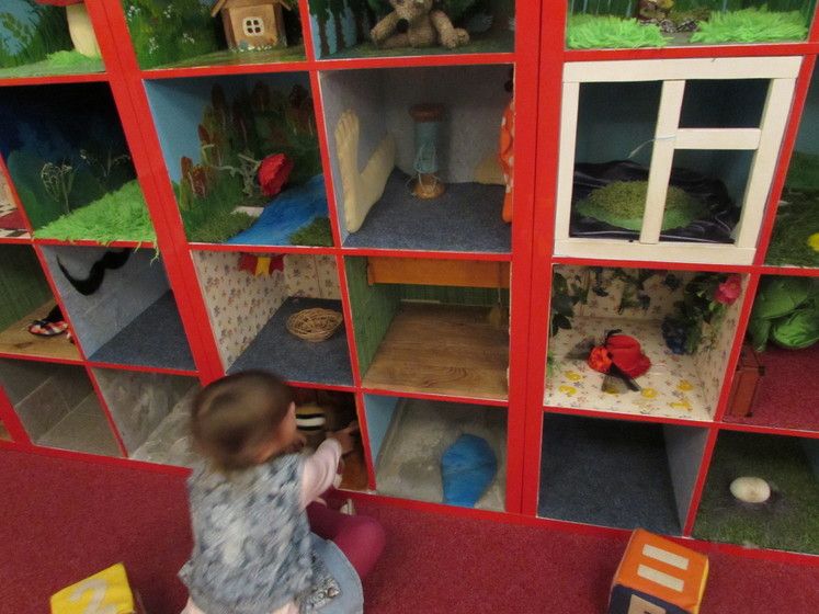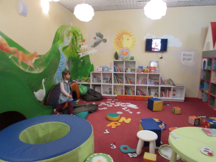 Тут мягкие буквы и цифры, книжки, на стенах в картинках тоже спрятаны буквы.