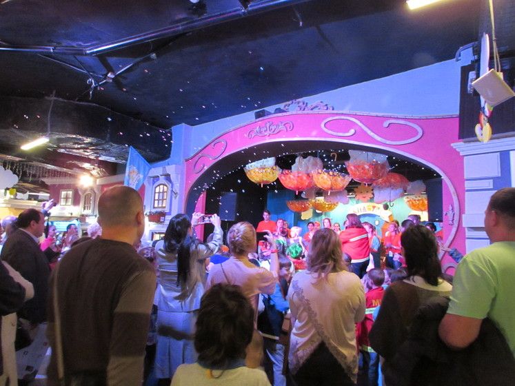 В процессе работы был танцевальный перерыв, а также поздравление именинников на главной сцене КидБурга.