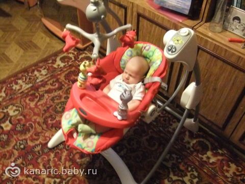 На 2 месяца купила своему мальчишке электронные качели. Там 3 режима положения. мелодии, вибрация. Вот уже 3 дня чувствую себя счастливой, т.к. качели очень понравились Дениске. Покормлю его и кладу в качельку, включаю на тихое покачивание и он под звуки музыки засыпает. Может проспать и час, и два, да и три может. За это время успеваю переделать все домашние дела и даже заняться собой. Но все равно один момент меня беспокоит. хоть в инструкции и написано, что с рождения, но совсем горизонтального положения в них нет, все равно получается как бы полусидя. Может подкладывать стоит что-нибудь, чтобы он совсем лежа был? Или там не идет нагрузки на позвоночник? Кто пользуется электронными качелями подскажите как быть: класть как есть в кресло или вы что-то подкладываете. Напоминаю, нам 2 месяца.