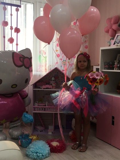 Поздравляю вас! Дочка красавица)) Скажите, где вы такого красивого кота-шар купили?