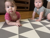 Мы встаем в кроватке, ходим туда сюда, уже падала пару раз лбом между реек, и на полу встает к ящику с игрушками, переворачивает его и тоже падает))