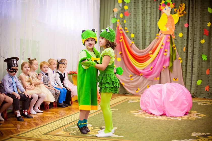 Наши воспитатели не устают проверять родителей на креативность). Костюм золотой рыбки для сына я уже придумывала, теперь настал черед Кати. Девочке моей досталась роль мамы-жабы в Дюймовочке.
