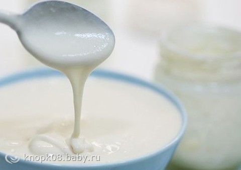 По началу давала просто чистый кефир и йогурт, сейчас мешаю с фруктами бананом, грушей, ну и по сезону персики, малина, клубника едим хорошо.Густота зависит от того сколько положили закваски чем больше тем гуще и наоборот
