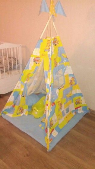 А вигвам сегодня подарили. Ребенок остался в восторге. Играл и играет с удовольствием. Спасибо сестренке. Оказывается, она занимается шитьем бортиков, вигвамов, постельного для детей на заказ. Не знала.