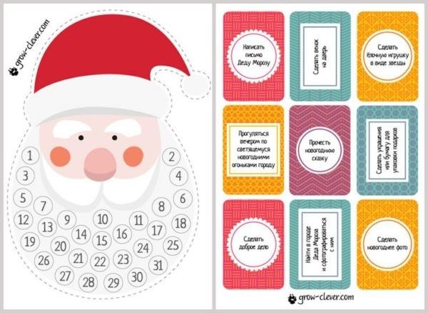 Адвент-календарь необязательно делать на полный месяц. Так, для самых маленьких детей, не отличающихся большим терпением, его можно сделать покороче — например, на две недели, или даже неделю! Это позволит создать атмосферу праздника и волшебства в доме, и в то же время не утомит малыша ожиданием.Добрых чудес вам в наступающем Новом году!