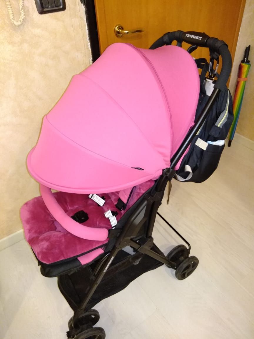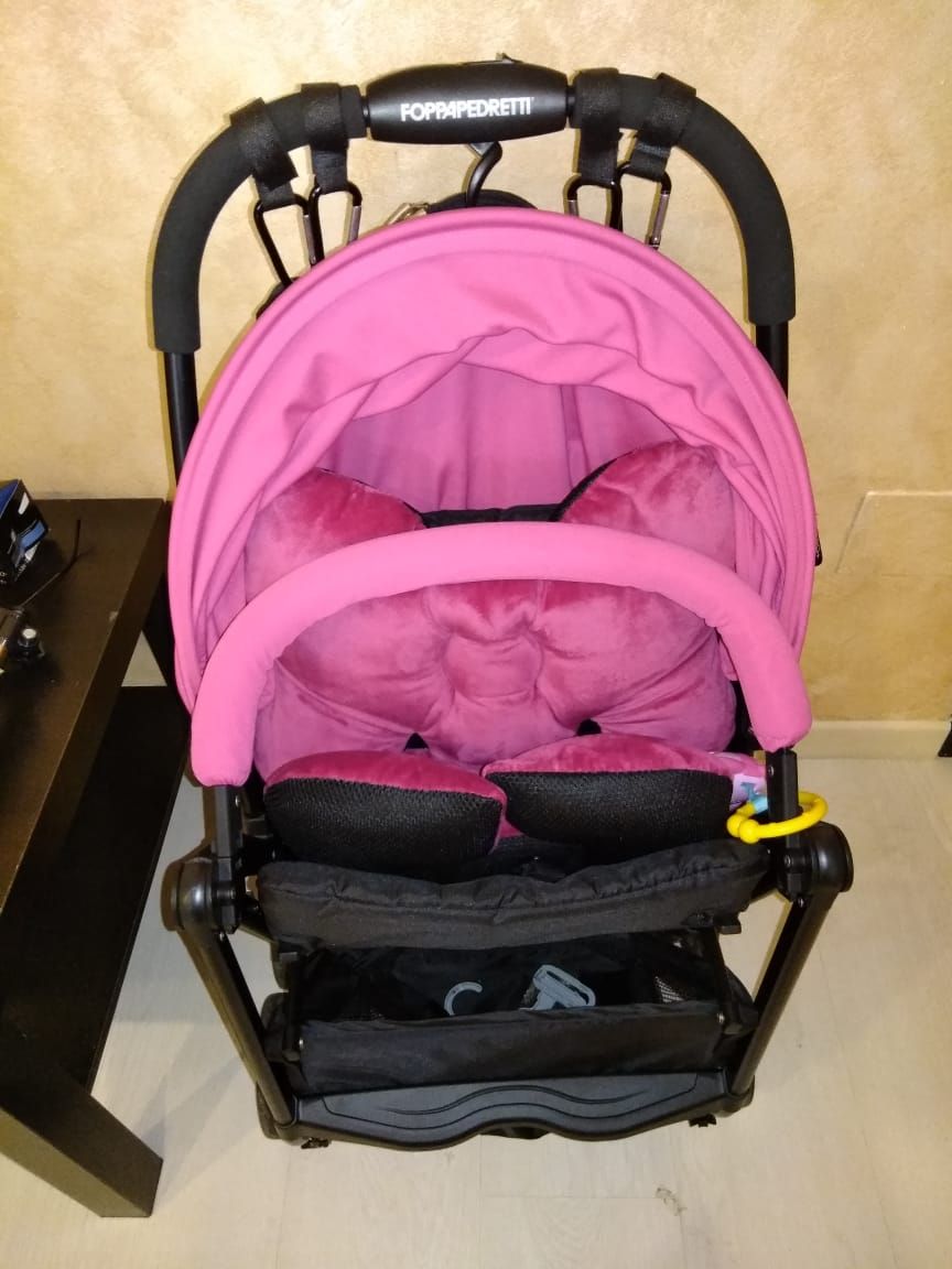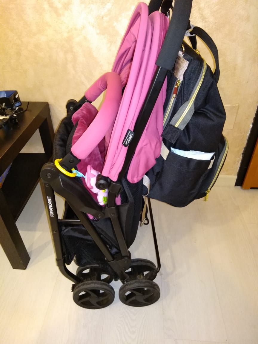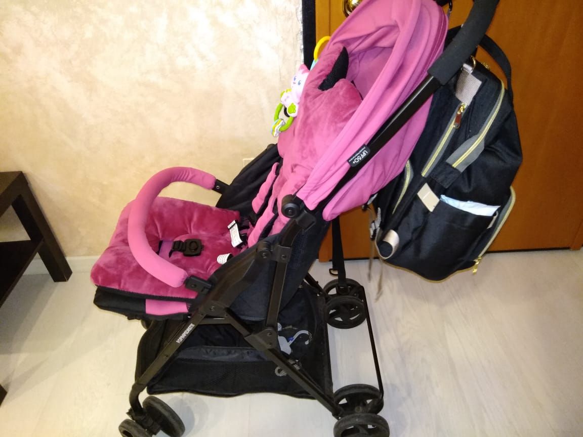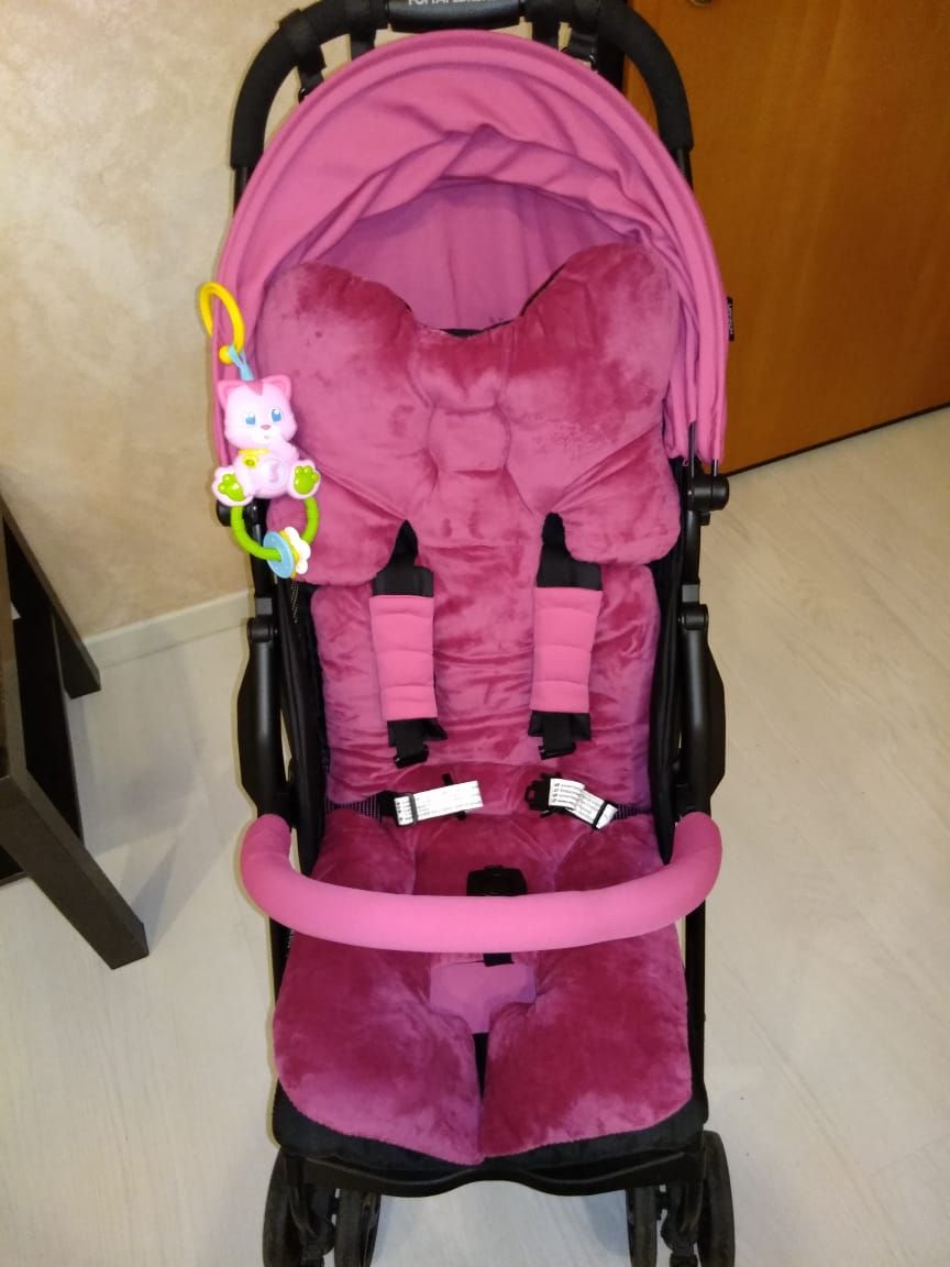 Мы взяли такой, есть прорези для ремней в прогулки.