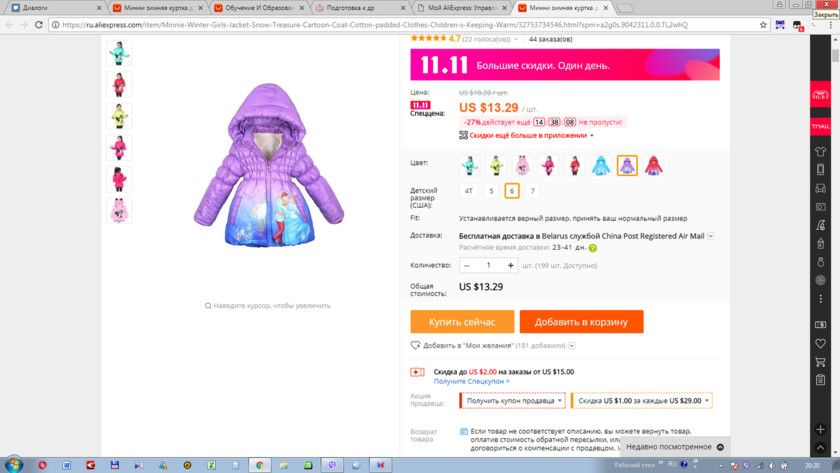 Сегодня я залезла на сайт. Всё даже дороже. Но очень нужна была куртка, а т.к. красные надоели — взяла фиолетовую. Дочка уже 5 сезонов отходила в куртке с Китая. Все довольны.