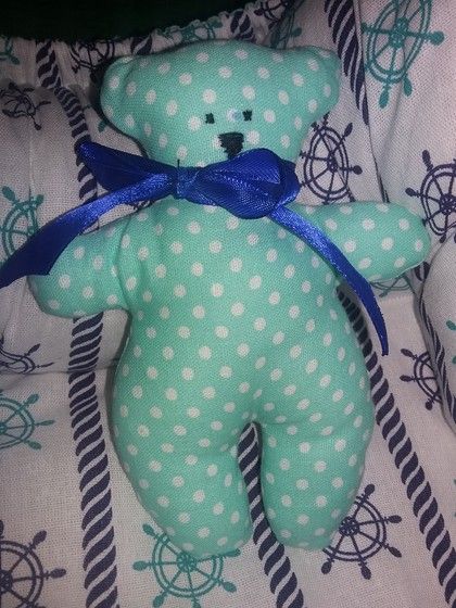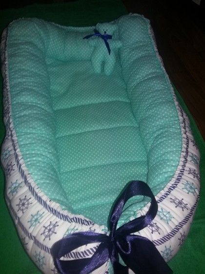 Давненько не показывала свои работы. Доченьке уже пол года и она теперь требует очень много внимания. К тому же сейчас осень, и почти месяц сынок на больничном и не ходит в садик. Вообще мы всей семьёй с сентября не можем с болячками попрощаться. Заказов в преддверии нового года море, запись идет уже на декабрь. Приходится шить ночами и нормального дневного света, да и времени чтоб отфоткать все отшитое нет. Но кое-что я сегодня все таки запечатлела, прежде чем заказ отправился в Нижний Новгород ожидать появления на свет своего маленького хозяина. В одной цветовой гамме с коконом НОВИНКА — игрушка мишка.