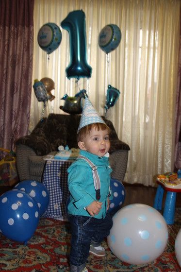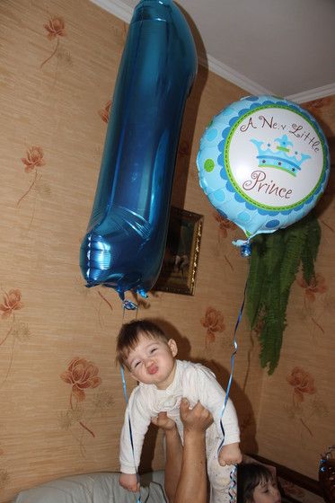 Именинник вел себя прекрасно, ему было все интересно, столько людей вдруг, дети… Именно в этот день он решил, что можно уже ходить не страшась упасть, и пошел уверенно))) Очень ему понравились шарики, особенно те, которые гелием надуты, и сейчас ещё парочка летают, сыночек с удовольствием прогуливает их по квартире за веревочку)))))