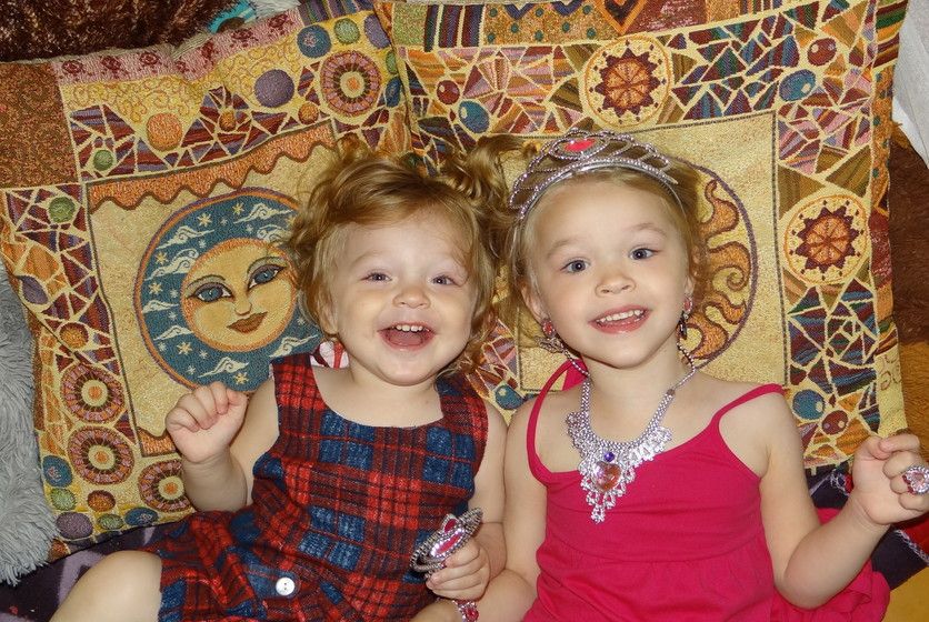 Скажи, а как девочки вместе играют? Не ругаются, не делят игрушки? Я читала у тебя, что все игрушки в двух экземплярах… У нас старший часто обижает младшую, как только она чем-то займется, то он может грубо выхватить, отобрать… и кричат потом оба.